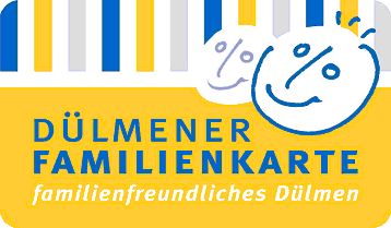 Die Dülmener Familienkarte bietet anspruchsberechtigten Familien Vergünstigungen bei verschiedenen Dülmener Betrieben und Institutionen, die dazugehörigen Gutscheine können bei vielen Einrichtungen und Vereinen in Dülmen eingelöst werden. Eine Auflistung der teilnehmenden Kooperationspartner können Sie diesem Infoblatt entnehmen. Diese Liste wird ständig aktualisiert.